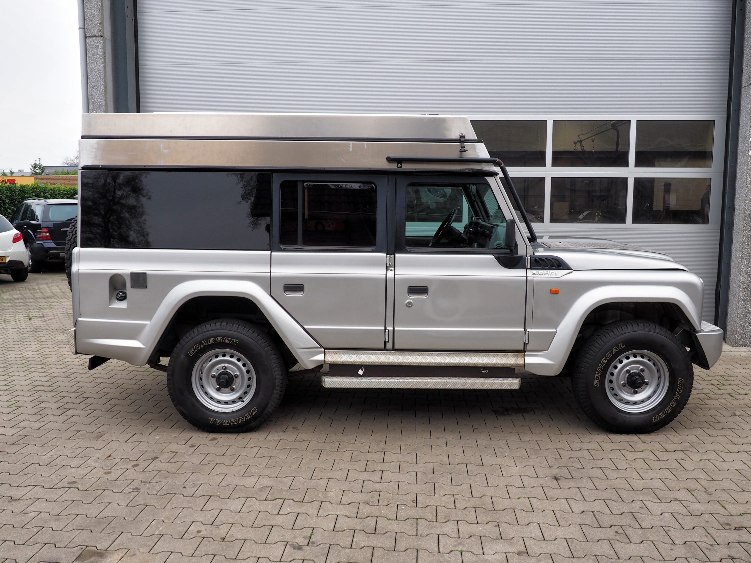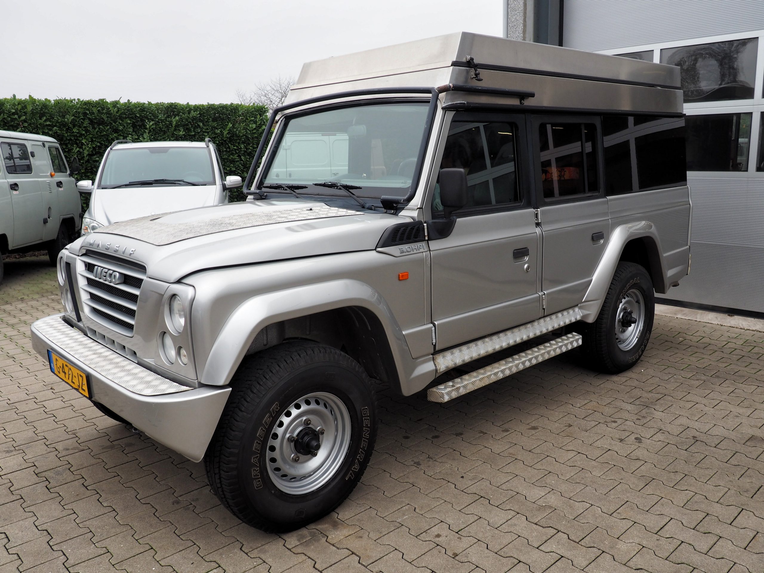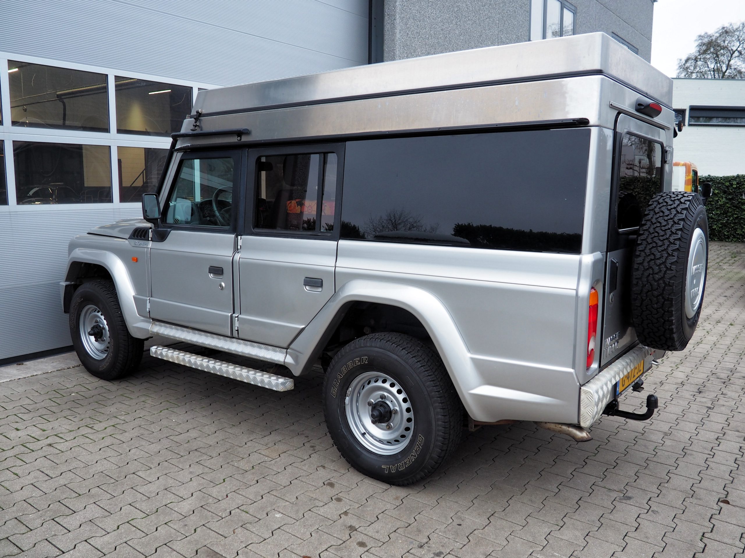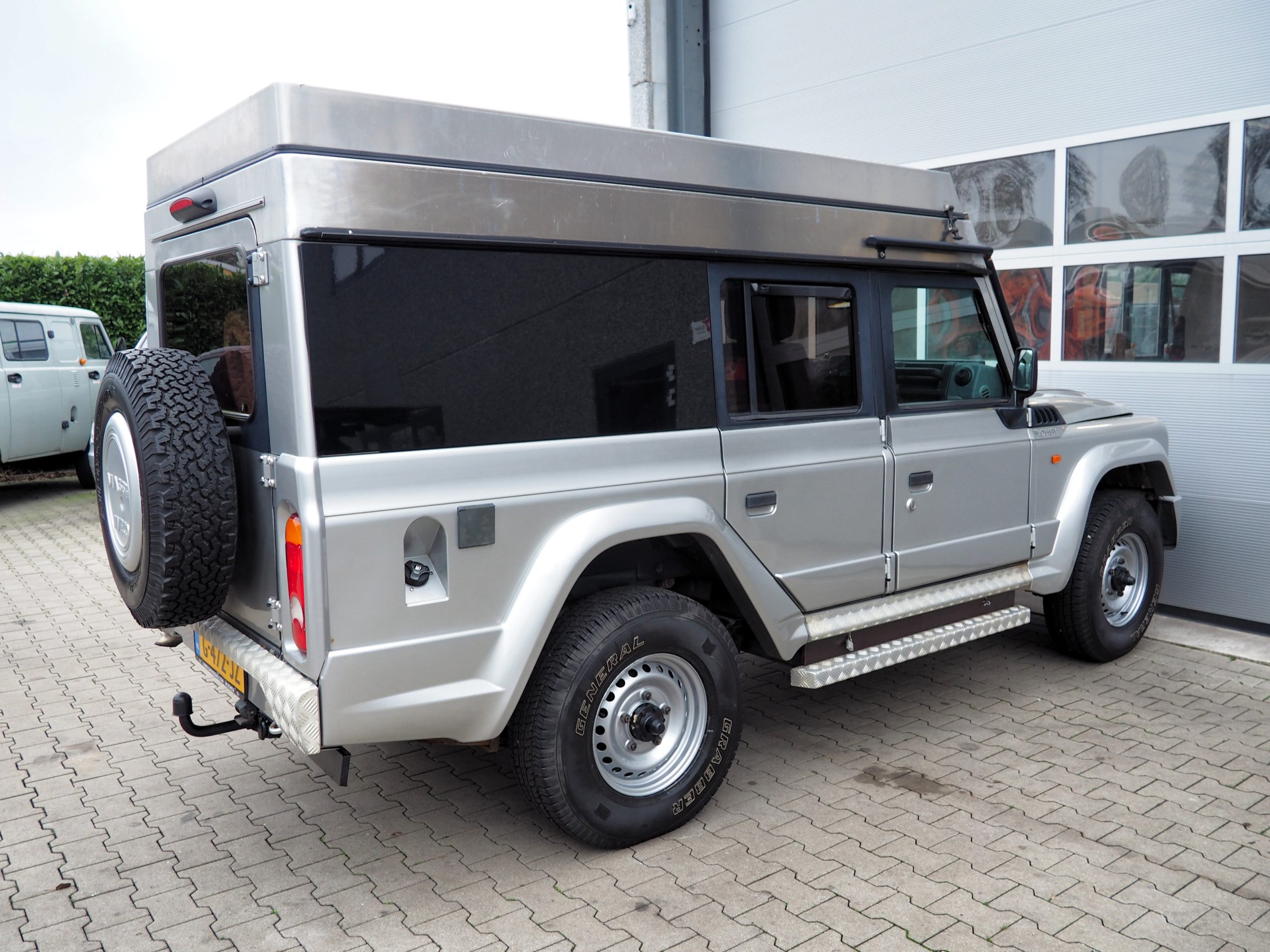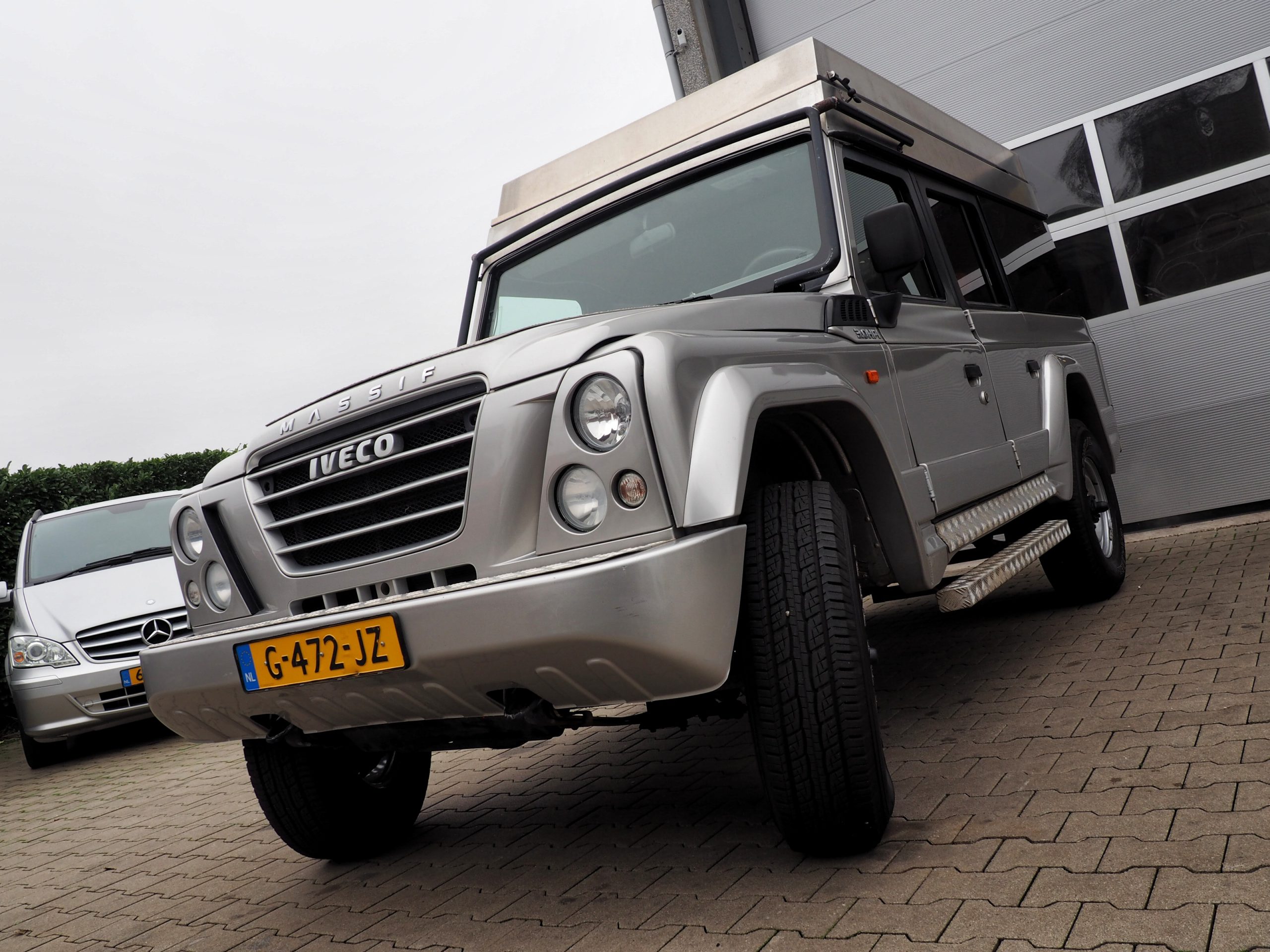 Deze nette Iveco Massif is door een liefhebber omgebouwd tot een tweepersoons camper met slaap hefdak.